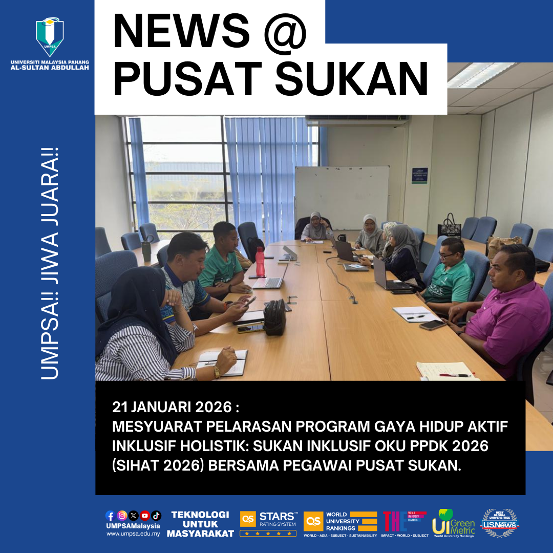 BERITA PUSAT SUKAN : MESYUARAT PELARASAN PROGRAM GAYA HIDUP AKTIF INKLUSIF HOLISTIK: SUKAN INKLUSIF OKU PPDK 2026 (SIHAT 2026) BERSAMA PEGAWAI PUSAT SUKAN