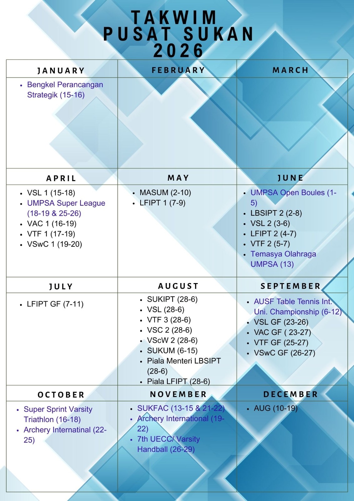 TAKWIM PUSAT SUKAN 2026